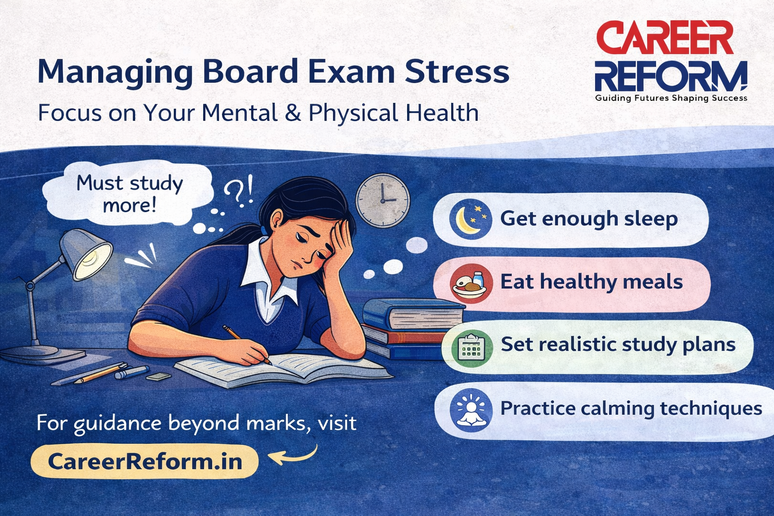 Feeling overwhelmed by exams? CareerReform.in helps students gain clarity, confidence, and calm—beyond marks. Explore guided career counselling today.